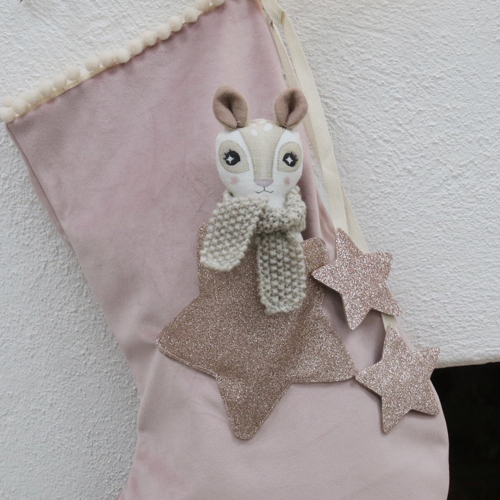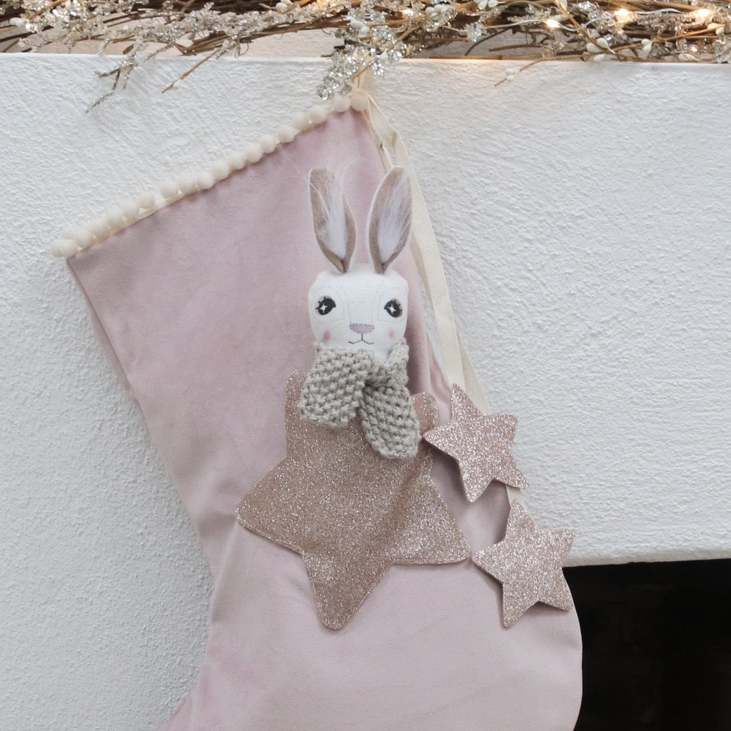 Blush Luxury Velvet Christmas Stocking and Mini Doll
