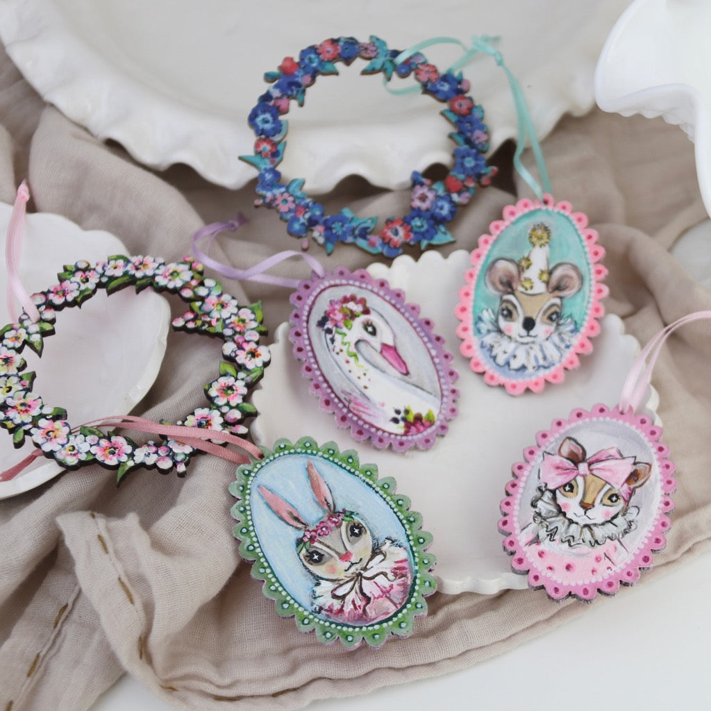 Our beautiful new collection of wooden decorations are created by the incredibly talented artist Amy Swann in North Wales. Inspired by Victorian photograph keepsakes, the limited collection features our Hare, Fawn, Swan and Dormouse characters, as well as perfect Spring garlands to complement.